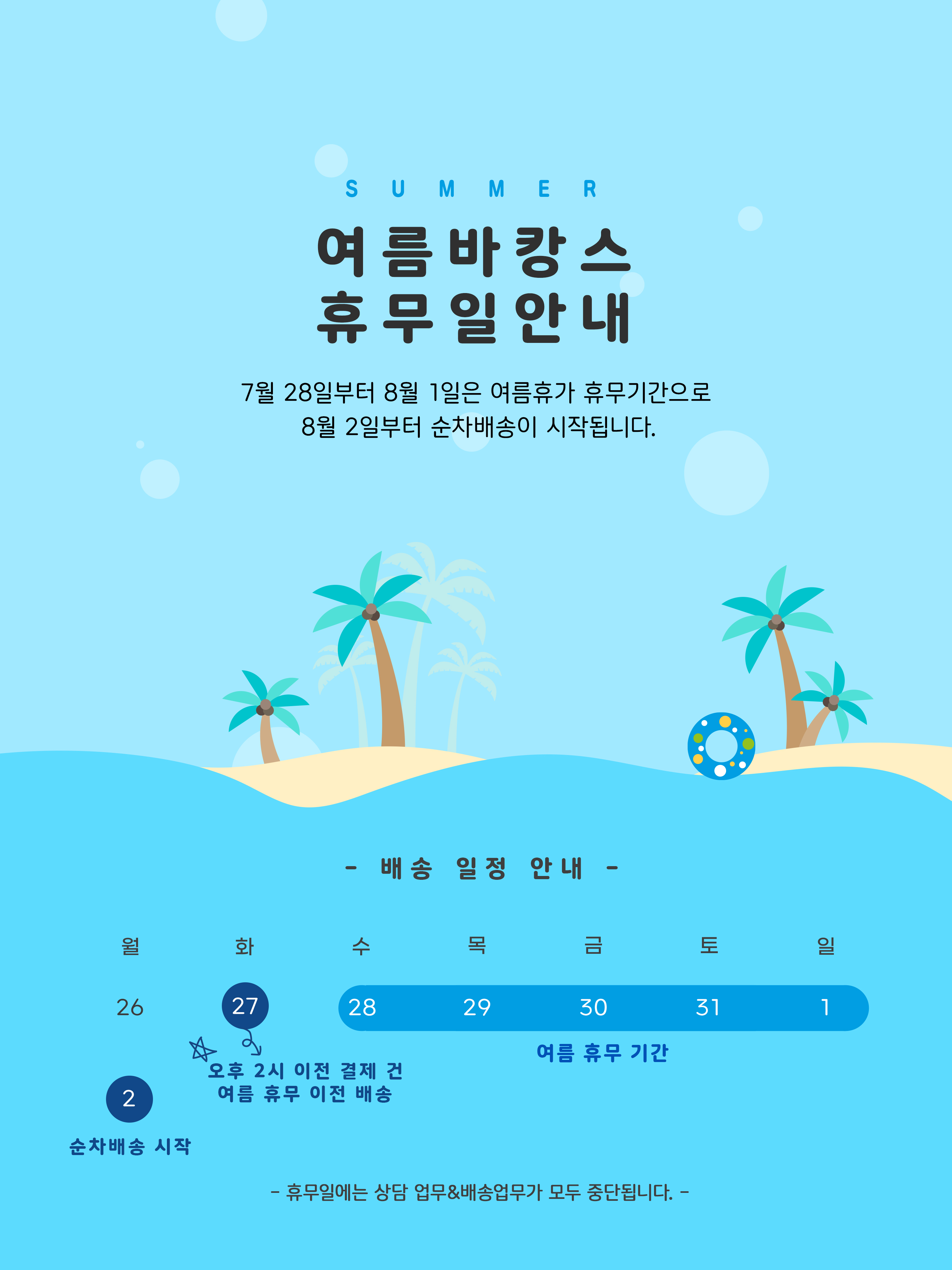 7¿ù 27ÀÏ ¿ÀÈÄ 2½Ã ÀÌÈÄ ÁÖ¹® °Ç ºÎÅÍ 8¿ù 2ÀÏ ¼øÂ÷ ¹ß¼ÛµË´Ï´Ù.